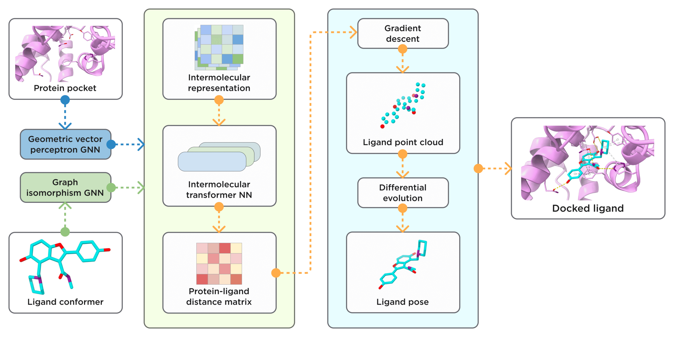 Figure 3. General scheme of ArtiDock model architecture and inference pipeline. [Credit: Receptor.AI]